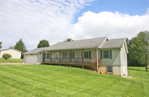 Spacious ranch home situated on double lots, features include 3 bedrooms and 3 full baths, large living room that opens to the adjoining dining area and white cabinet filled kitchen with breakfast bar and major appliances, first floor den/home office, convenient main level laundry/mud room, walkout lower level, attached 2 car garage plus a detached 2 car garage/workshop, relaxing rear deck and patio space, covered front porch, natural gas forced air heating & central air, impressive home for only $139,500.
