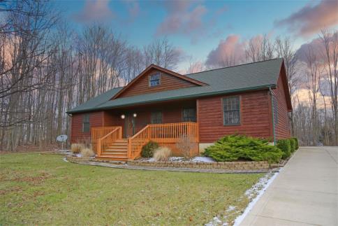 Beautiful ranch home situated on a quiet cul-de-sac, great location not far from the Floral Valley Community Center, features include 3 bedrooms and 2 full baths, large vaulted ceiling great room with living room, dining area and pretty cabinet filled kitchen with major appliances, convenient main level laundry room, first floor owners bedroom suite with its own private bath, nice woodwork and solid 6 panel doors, full basement could be finished for additional living space, attached 2 car garage with concrete driveway, covered front porch and a relaxing rear deck, well maintained and priced to sell at $200,000.