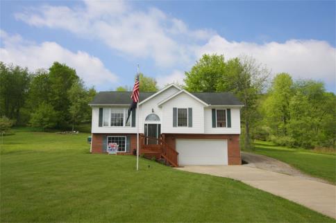 Spacious bi-level home that is situated on 2 lots totaling 1.068 acres, features include 3 bedrooms and 3 full baths, vaulted ceiling great room with living room, dining area and cabinet filled kitchen with major appliances, finished lower level with family room, fireplace and 3rd full bath, master bedroom suite with its own private bath, attached 2 car garage with concrete drive plus a detached 32 x 32 garage/workshop with heat, air and a 16’ overhead door, huge rear deck, natural gas forced air heating and central air conditioning, low maintenance brick and vinyl sided exterior, a must see for $170,000.
