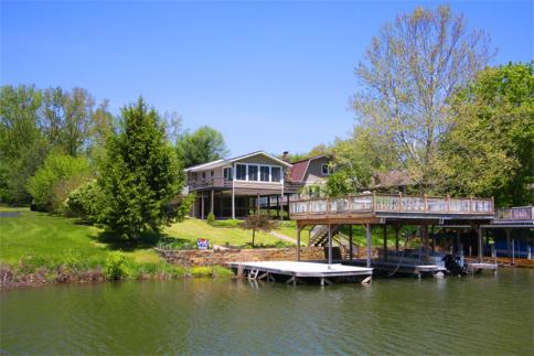 LAKEFRONT-Great location in walking distance to Sutton Beach, this spacious Apple Valley lakefront home features 3 bedrooms and 3 full baths, large natural light filled living room, gorgeous oak cabinet filled kitchen with major appliances and breakfast bar, open dining room with vaulted ceilings and skylights, huge main level master bedroom, finished walkout lower level with rec room and kitchenette, huge covered rear patio, awesome boat dock with two party decks, attached 2 car garage with concrete drive, attached storage room/workshop off the garage, changing room/full bath off the patio, natural gas forced air heating and central air conditioning, quick possession available, a must see! $275,000.