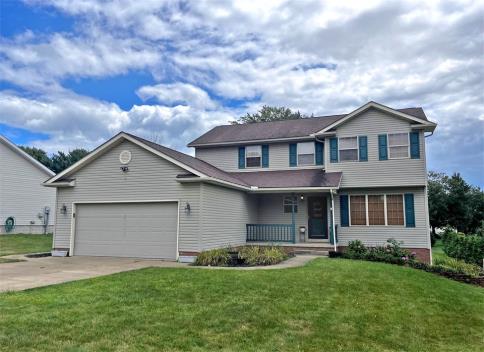 Schlabach constructed home with a view of Apple Valley Lake, this spacious 2 story home offers 3-4 bedrooms and 2.5 baths, large living room with lots of natural light, adjoining dining area that is open to the gorgeous cabinet filled kitchen with breakfast bar, vaulted ceiling 4 season sun room with access to the rear deck and fenced in back yard, convenient main level laundry/mud room, primary bedroom suite with walk in closet and private en suite bath, finished lower level with family room and 4th bedroom or home office space, attached 2 car garage with concrete driveway, natural gas heat and central air, great location and priced to sell at $325,000.