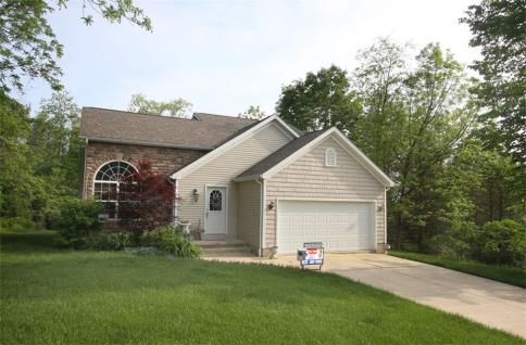 Gorgeous sun filled contemporary that features 3 bedrooms plus bonus den that's adjacent to the third bedroom, 2 full baths, just a stone throw away from the lake, 2 story living room with an open staircase, large adjoining dining area with glass sliders that lead to the multi-tiered deck and fantastic back yard, gorgeous oak cabinet filled kitchen with stainless steel appliances, first floor master suite with walk in closet, main level laundry, big walkout basement that is rough plumbed for an additional bath, natural gas heat and central air, attached 2 car garage with concrete drive plus a large 2 story 24 x 32 garage/workshop, nicely landscaped and beautifully maintained overall, you will be impressed with this unique property. $175,000