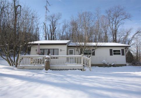 THE PRICE IS RIGHT!!! This ranch home features a wonderful layout, there are 2 bedrooms, formal living room, kitchen great room with an oak cabinetry filled kitchen and ceramic tile flooring that is open to a nice family room with wood burning stove, convenient main level laundry / mud room, relaxing rear patio and front deck, low maintenance vinyl sided exterior, wonderful location with a lake view of the Apple Valley Lake, this home needs interior painting and it is priced LOW for a super fast sale at $59,500.