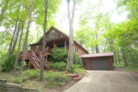 Amazing hilltop wooded setting with seasonal lake views, unique custom home that would make a great weekend/vacation property or perfect for year round living, features include a 2 story living room highlighted by a gas log fireplace, open adjoining dining area and cabinet filled kitchen with center island and includes the major appliances, 2-3 bedrooms and 3 full baths, 2nd floor master suite with upgraded master bath, finished walkout lower level with family room, full bath and bonus space, oversized attached garage with concrete driveway, re-shingled three dimensional roof, covered front and rear porches, you will love this homes floor plan and relaxing & private setting, a must see home that’s priced to sell at $150,000.