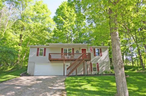 Nice, neat and clean ranch home situated on a beautiful wooded lot, features include 3 bedrooms and 2 full baths, nice sized living room that is open to the dining area, gorgeous oak cabinet filled kitchen with ceramic tile floors, master bedroom suite with private bath and large walk in closet, walkout lower level, attached 2 car garage, relaxing rear deck and covered front porch, natural gas forced air heating and central air conditioning, beautifully landscaped yard, a must see home for only $120,000.