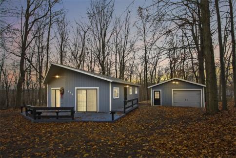 Cottage in the woods. Beautifully updated and move in ready. Situated on a gorgeous and oversized wooded lot. Features include an open great room floor plan with a step down living room, adjoining dining area and pretty white cabinet filled kitchen with modern appliances. Nice sized bedroom with access to main level bath with large walk in shower and main level laundry area. Relaxing front deck. Detached and oversized 2.5 car garage with double doors and finished bonus room. Numerous improvements throughout. Immediate possession available. Priced to sell at $100,000.