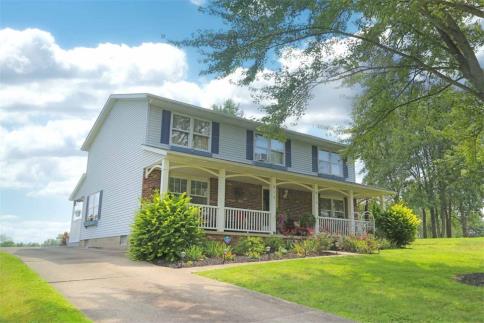 Wonderful and spacious Golf Course Front home overlooking the 6th green, this two story home offers 4 bedrooms, 2 full and 2 half baths, formal living and dining rooms, main level family room with corner gas fireplace, pretty cabinet filled kitchen with appliances and adjoining breakfast room, finished lower level with recreation room and bar area, convenient main level laundry, primary bedroom suite with walk in closet and private bath, enclosed sun porch and covered porch area, attached 3 car garage with concrete driveway, yard barn for added storage, well maintained and a must see at $335,000.