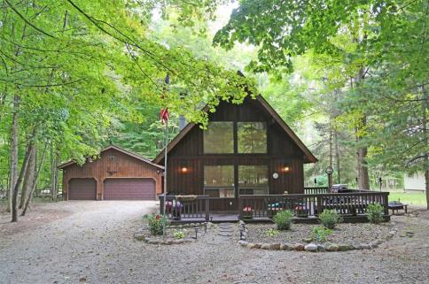 Rustic contemporary home situated on double wooded lots, this home offers 3 bedrooms and 2 full baths, nice sized living room, open kitchen/great room with wood burning stove and vaulted ceilings, adjoining dining area, two large loft style bedrooms, attached 3 car garage, relaxing front decking, perfect for part or full time lake living, priced to sell at $200,000.