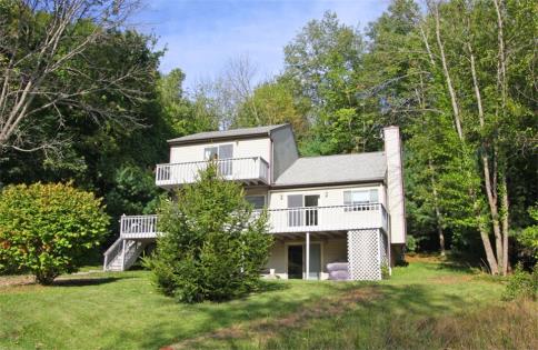 LAKEVIEW! Wonderful view of Apple Valley Lake from this contemporary home, features include 3 bedrooms and 2 full baths, open floor plan that includes a nice sized living room with wood burning fireplace and easy care laminate flooring, adjoining dining area and cabinet filled kitchen, private master bedroom suite with walk in closet, bath and balcony deck, walkout lower level that could be finished for additional living space, relaxing deck with beautiful view, natural gas forced air heating and central air conditioning, new windows and sliding glass doors, new hot water tank, super nice home that is perfect for year round or part-time lake living.  $125,000