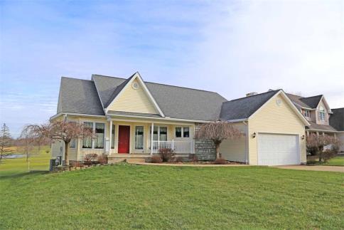 Beautiful and spacious ranch home overlooking the Apple Valley Golf Course, features include 4 bedrooms and 3 full baths, vaulted ceiling living room with gas log fireplace and access to the rear deck, formal dining room, pretty cabinet filled kitchen with appliances and adjoining breakfast nook, primary bedroom suite with private bath and access to decking, finished walkout lower level with second family room, fourth bedroom, full bath and home office space, attached 2 car garage with concrete driveway, other features include 2x6 side walls, updated roof and new flooring, gorgeous views, a must see at $325,000.